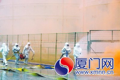 危化品消防演练。(本报记者 黄嵘 摄)